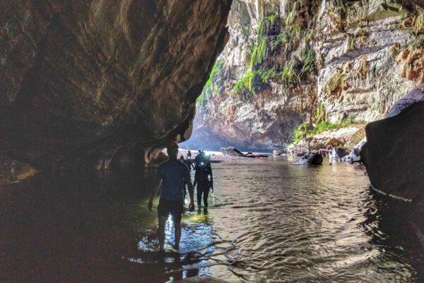 Dopo aver guadato i ruscelli sotterranei, si raggiunge il grande pavimento sabbioso della gigantesca uscita della grotta. Il gruppo tornerà attraverso la grotta al campo sotterraneo per pranzare e fare una breve pausa. Il gruppo lascerà poi la grotta per affrontare l’ultima sfida: attraversare molti ruscelli e scalare una ripida collina alta circa 450 metri. In cima alla collina si trova la strada e un autobus con bevande fresche pronto ad accogliervi al ritorno dopo tutte le sfide della vostra avventura speleologica alla scoperta del meraviglioso Hang En.