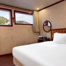 La crociera di Garden Bay Legend offre un servizio impeccabile e tutti i moderni servizi essenziali per soddisfare i viaggiatori. Costruita in legno, pietra e bronzo, con uno stile tradizionale ed elegante, questa nave vi porta in un viaggio alla scoperta della bellezza della baia di Halong.