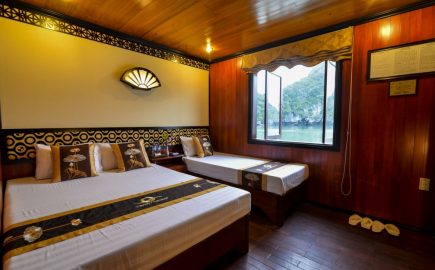 V’Spirit offre 3 tradizionali giunche in legno, ognuna con cabine e servizi moderni, un elegante ristorante, una grande terrazza solarium ideale per contemplare gli scenari mozzafiato della natura in qualsiasi momento, un bar all’aperto molto bello, un ristorante che offre tanti buonissimi piatti tradizionali vietnamiti così come quelli internazionali… Andare in crociera V’Spirit sull’Halong Bay è davvero una buona idea per rilassarsi nel natura meravigliosa. Vi porterà la pace e il relax attraverso diverse attività: pesca dei calamari, giochi da tavolo, lezioni di Tai Chi, nuoto alle spiagge tranquille e soleggiate, degustazione di un delizioso drink nel tramonto, … È davvero una scappatella esaltante!