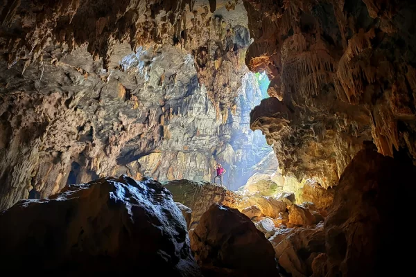 Colazione al campeggio. Il giorno seguente, farai un trek, esplorerai e nuoterai attraverso Grotta di Tu Lan e Grotta di Kim per raggiungere la Valle di To Mo, due grotte spettacolari. Pranzerai al campeggio di To Mo prima di nuotare nella Grotta di Hung Ton, accanto alla cascata. All’interno della grotta, il gruppo dovrà salire una scala alta 10 metri con imbracature di sicurezza. Una breve camminata conduce all’ingresso della grotta. Davanti all’ingresso della grotta si trova lo splendido scenario della Valle di Hung Ton, un ottimo punto per scattare bellissime foto. Da lì il gruppo tornerà all’ufficio dell’operatore turistico locale Tan Hoa lungo la Valle di Hung Ton, attraversando il Fiume di Rao Nan e i campi di arachidi e mais per l’ultima volta. Tornati all’ufficio di Tan Hoa, il gruppo farà il check-in al Rural Homestay di Tan Hoa per fare la doccia e rilassarsi.